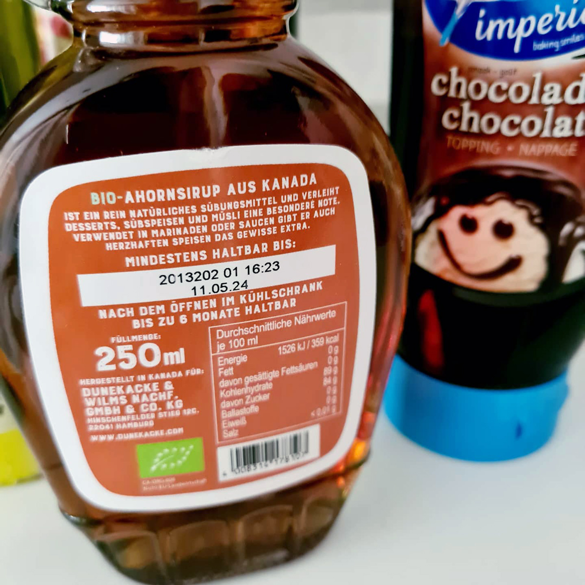Ahornsirup gibt es zu den nächsten Pfannkuchen und ich mische es gerne in mein Müsli.